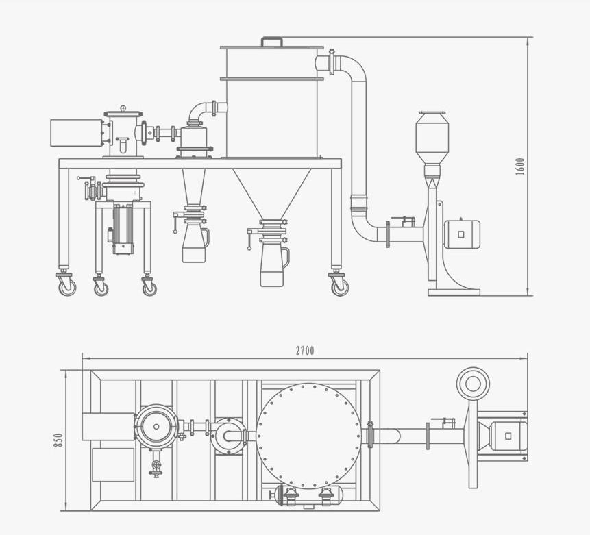 - 結(jié)合氣流粉碎、氣流分級(jí)、機(jī)械粉碎于一體的三合一組合式結(jié)構(gòu)。